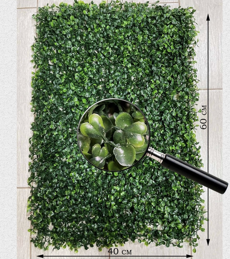 Խոտածածկ(պատի կովրիկ) պատին ամրացվող։ Չափեր՝ 60*40սմ։ Նյութ՝ արհեստական տերև։ Հետևի մասում առկա է պլաստմասե ցանց, որի շնորհիվ ամրանում են մեկը մյուսին և ամրացվում պատի վրա։ Առկայություն: Առկա է - Առկայություն: