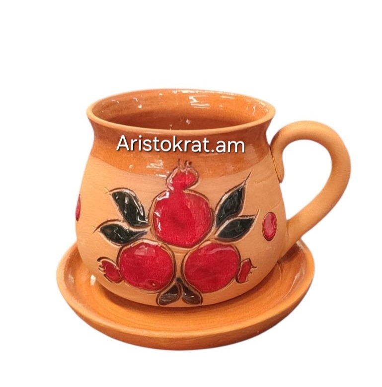 Բաժակ սուրճի ափսեով <<ՏԱՌ-ՆՈԻՌ>>։ Չափեր՝ 9*9*7սմ։ Թրծված է շատ բարձր ջերմաստիճանում, ինչի շնորհիվ բաժակը կարող եք օգտագործել ջեռոցում և գազի վրա: Իր հատուկ կորության շնորհիվ սուրճը երկար ժամանակ տաք է մնում։ Հումքը բարձրորակ հայկական սպիտակ կավի, ռուսական կարմիր կավի և շամուտի խառնուրդ է։ Կարող եք պատվիրել ցանկացած անվանական տառատեսակ։ - Առկայություն: